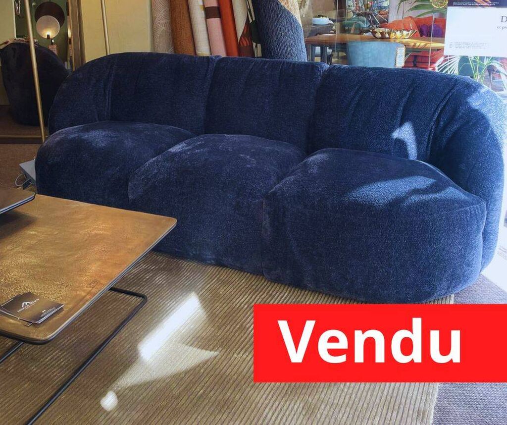 Canapé 3 places, tissu bleu foncé