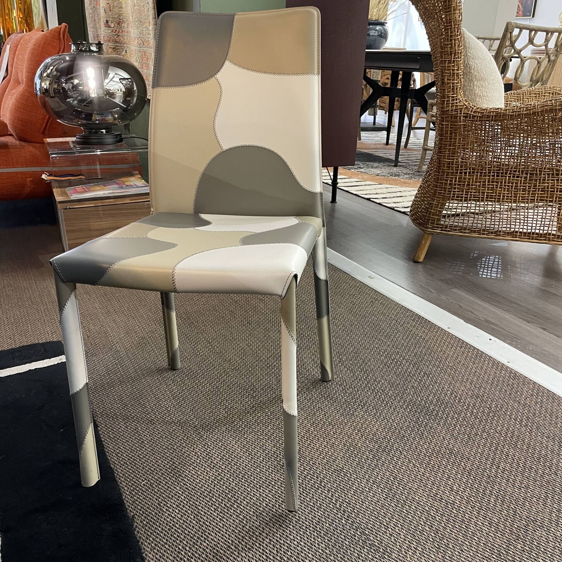 Chaise patchwork cuir teinte : gris, beige et blanc