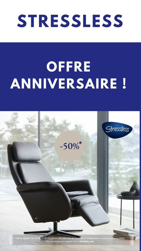Ne manquez pas cette occasion unique de vous détendre avec style. Rendez-vous vite en magasin pour découvrir nos modèles exclusifs de chez Stressless !