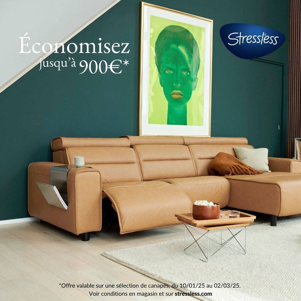 Profitez d'une remise de 300 € par place de canapé électrique des modèles Stressless® Anna, Emily et Mary, et d'une remise de 250€ par place de canapé des modèles Stressless® Buckingham, Fiona, Sapphire, Stella, Wave, Windsor. Valable dans tous les revêtements et coloris.