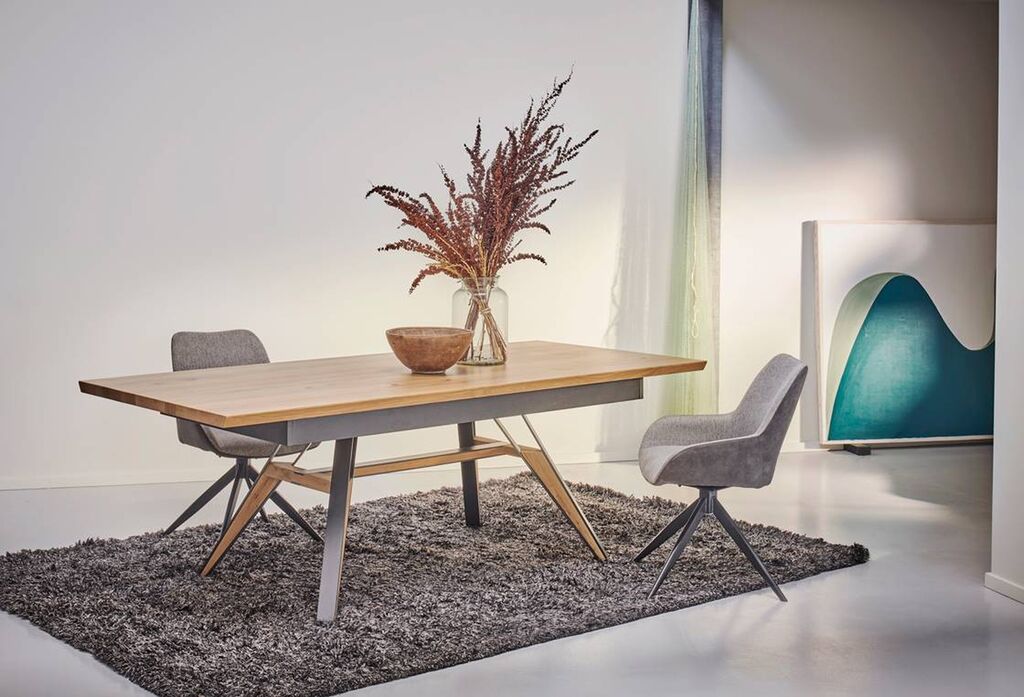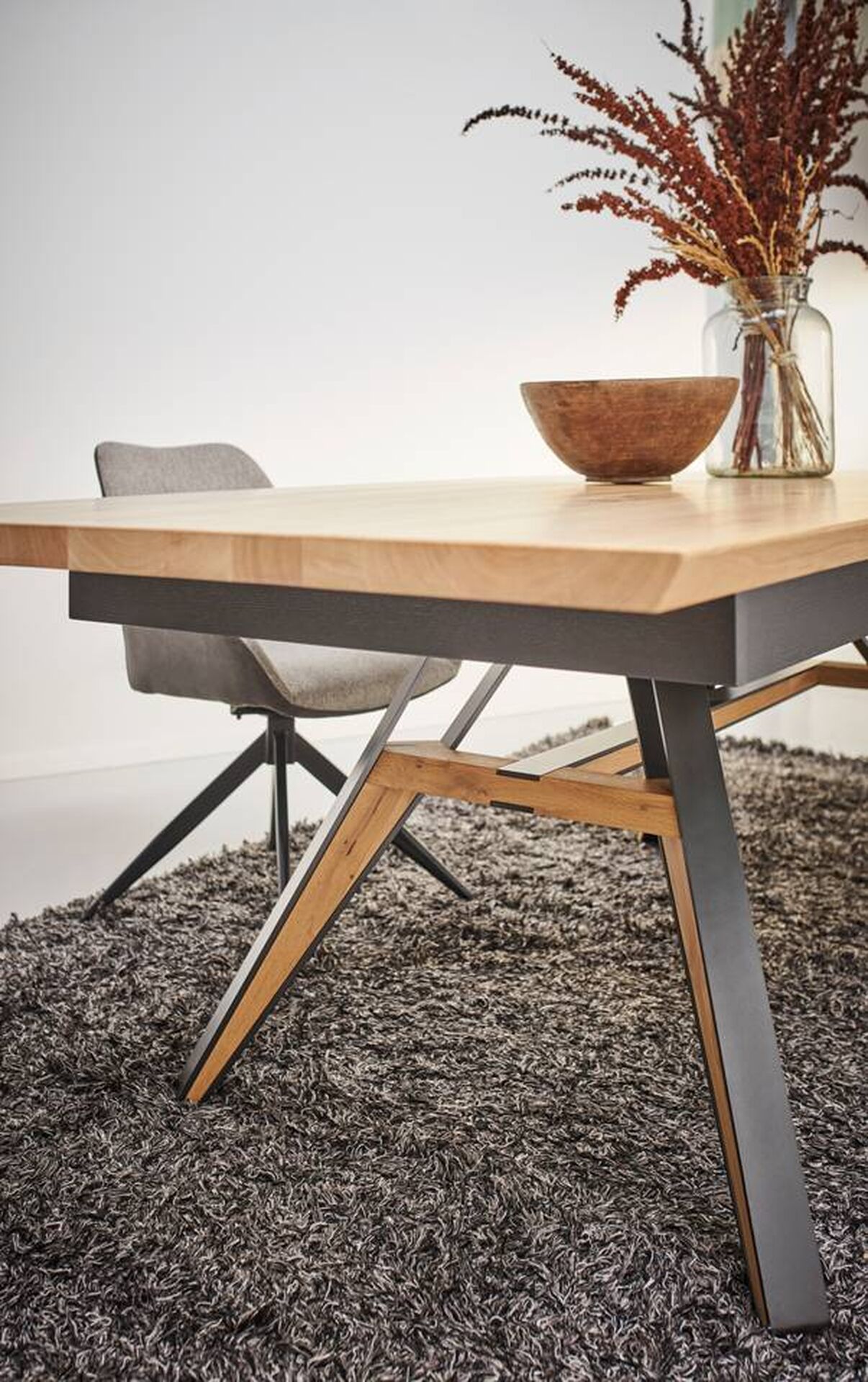 table de repas rectangulaire extensible, parfaite pour accueillir jusqu'à 8 convives dans votre salle à manger. Intemporelle et sobre, elle allie avec élégance le chêne naturel et le métal pour un style industriel tendance qui saura s'intégrer harmonieusement à votre décor.